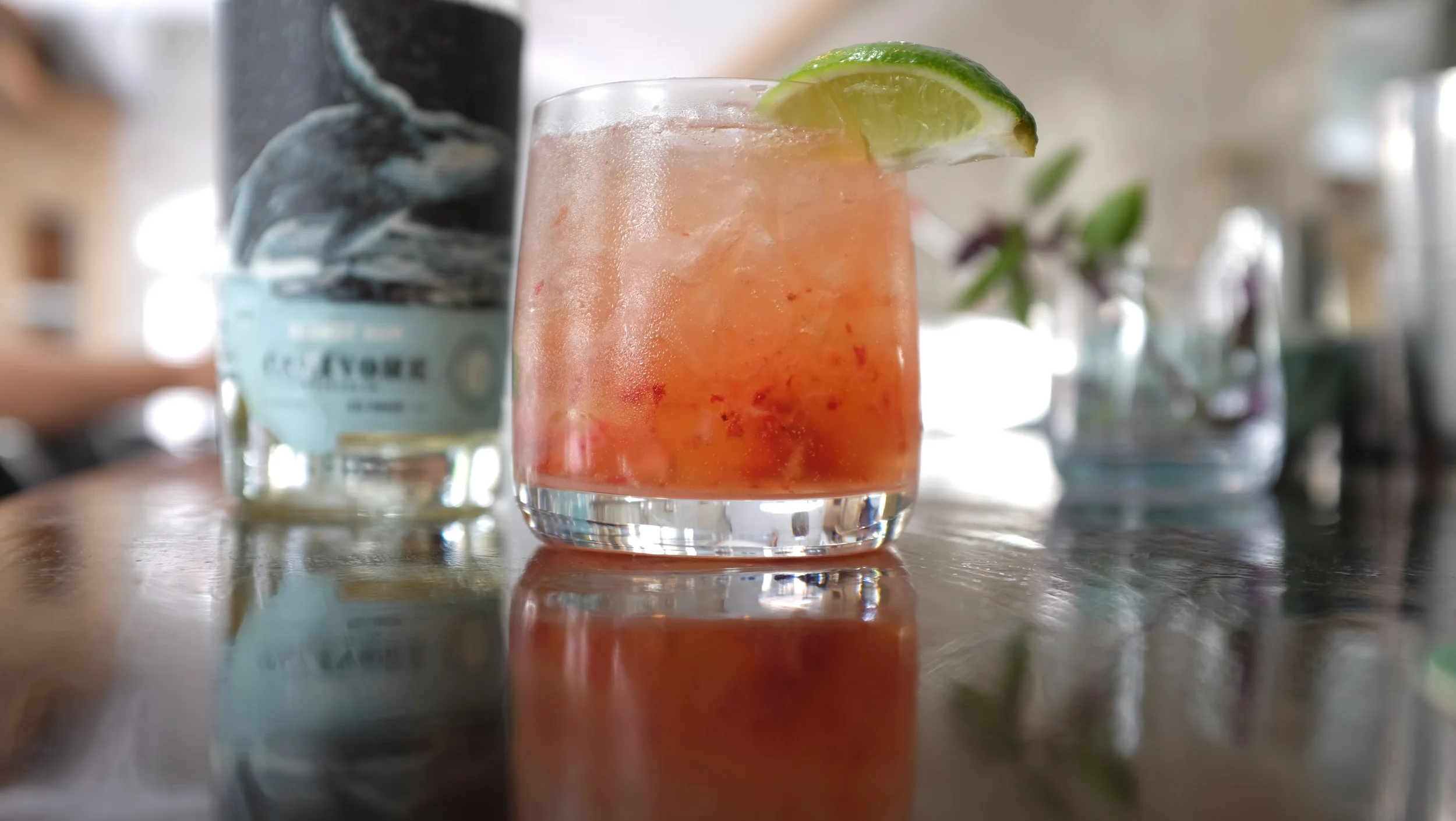 To open our palates, Jeff begins with the lively hued Dragon Fruit Caipiroska, a vodka based version of the famous Brazilian Smash - the Caipirinha. Jeff mixes cane sugar, fresh lime, dragon fruit infused vodka, soda water and a lavender garnish to play with your senses.